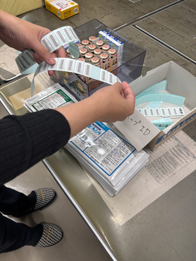 現在、アルバイトスタッフを増員し、社員一同協力して一つひとつの商品に丁寧にバーコードを貼付しております。
