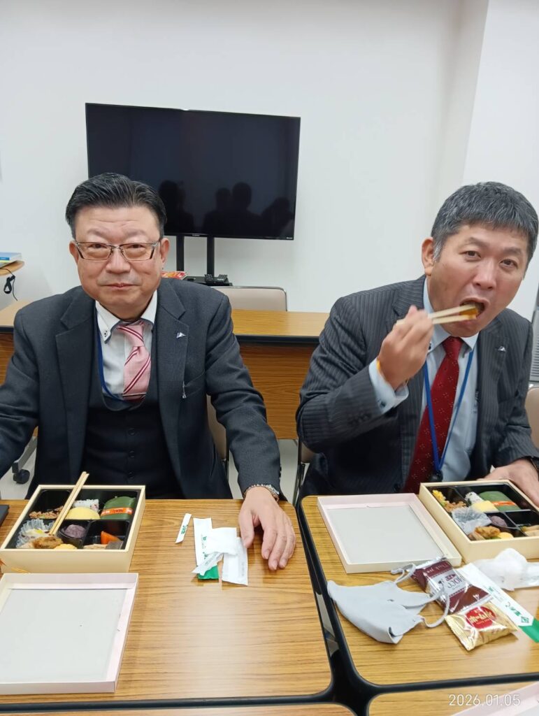 美味しいお弁当を囲みながら、年末年始の過ごし方や、今年の抱負を一人ずつ発表しました。