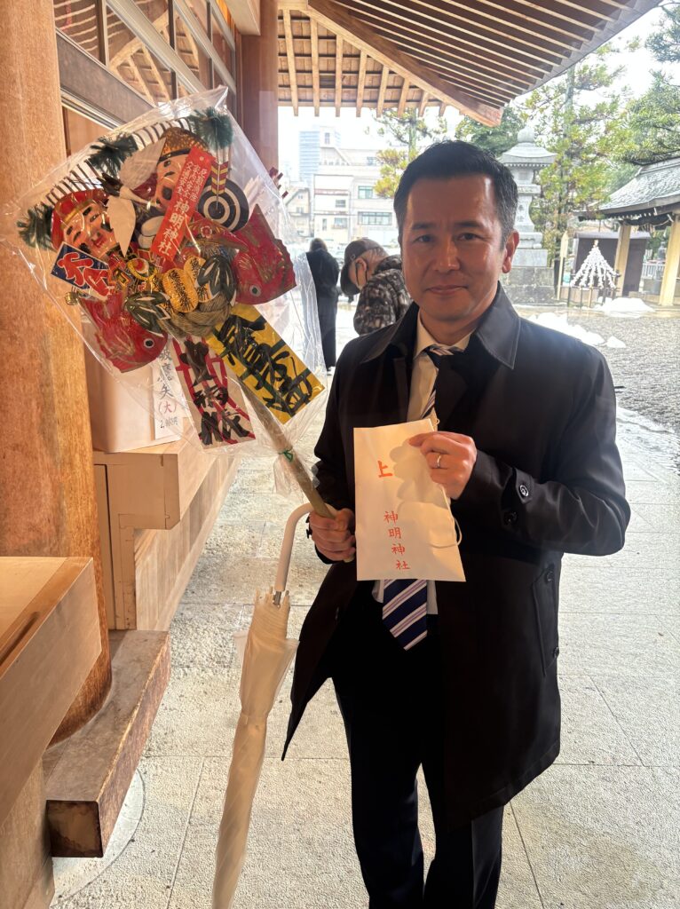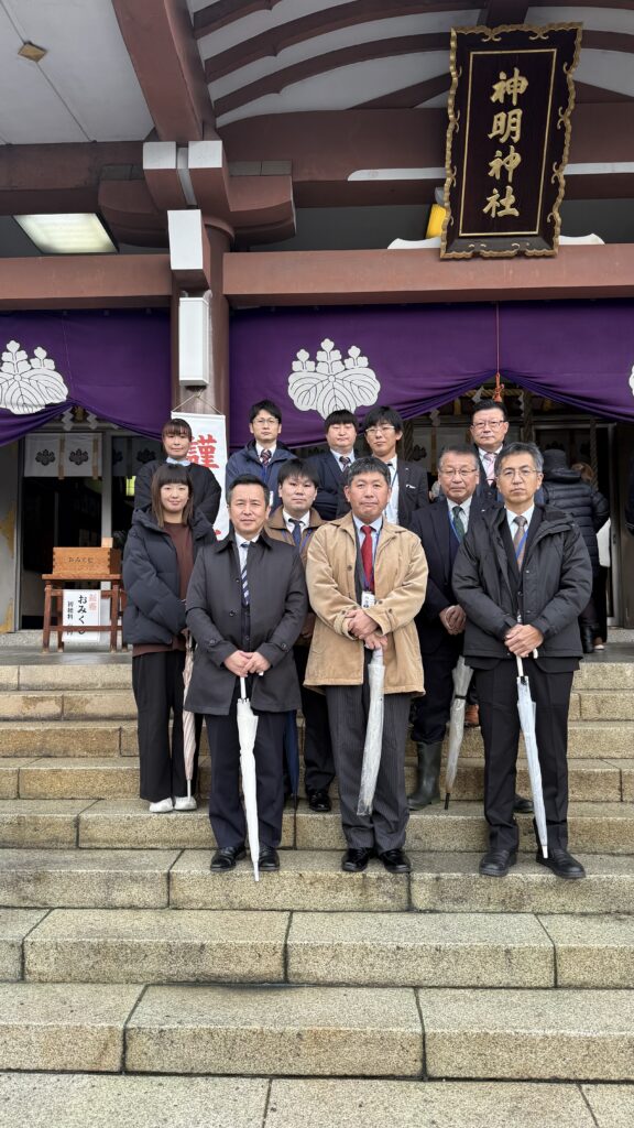 その後、社員全員で近くの神社へ参拝し、今年一年の健康と商売繁盛を祈願しました。
